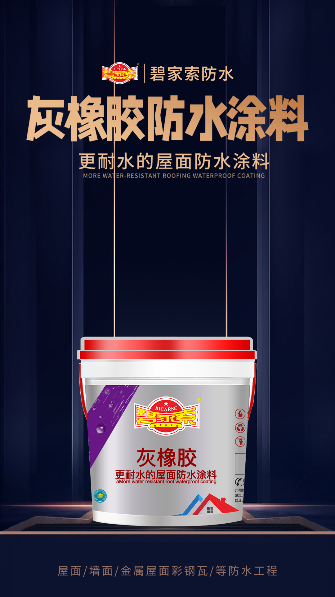 碧家索灰橡胶屋面防水涂料